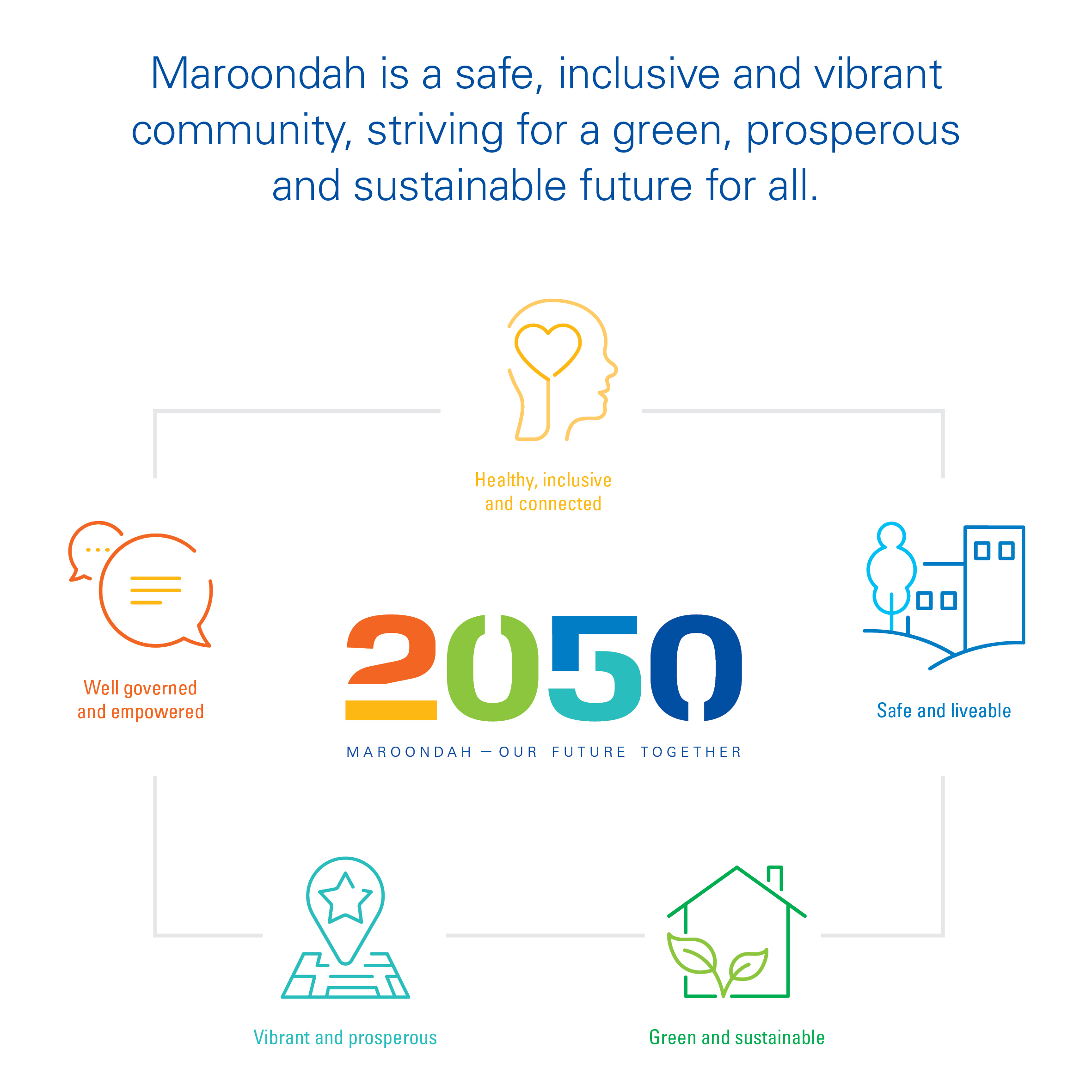 The Maroondah 2050 Community Vision provides a ‘roadmap’ for the community, Council, organisations and businesses, as well as other levels of government, to partner to create a future that enhances Maroondah as a great place to live, work, play and visit.